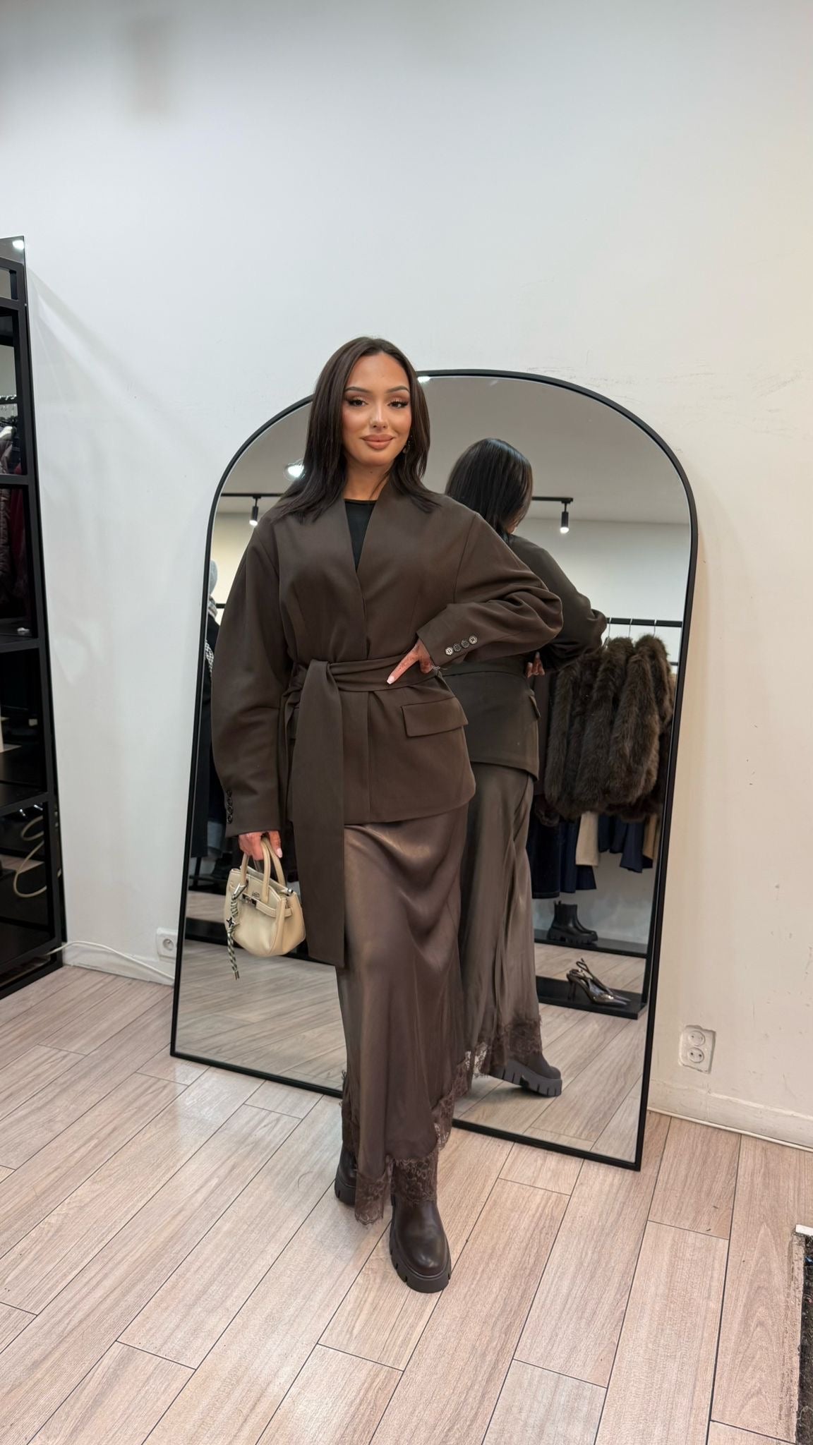 - jupe satinée avec dentelle
